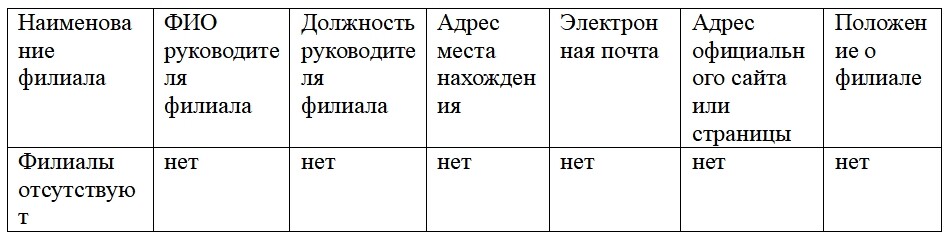 Сведения о филиалах