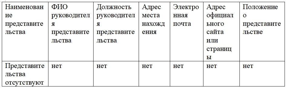 Сведения о представительствах