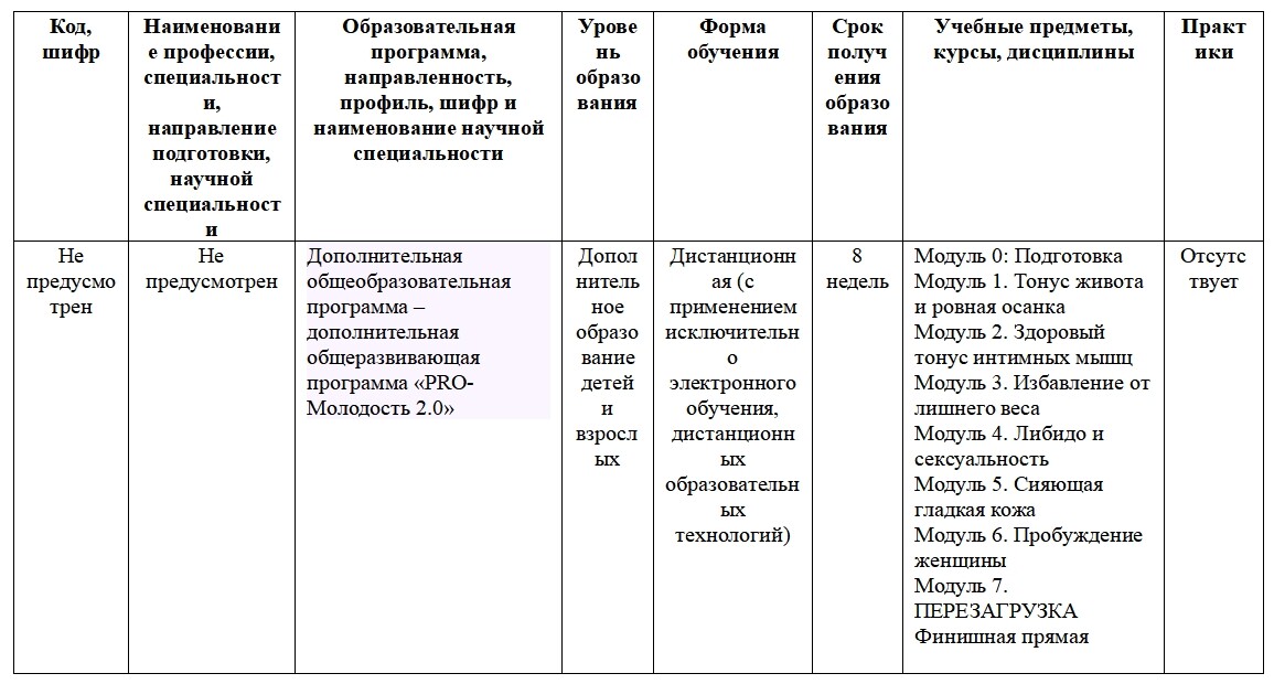 Информация об образовательной программе,